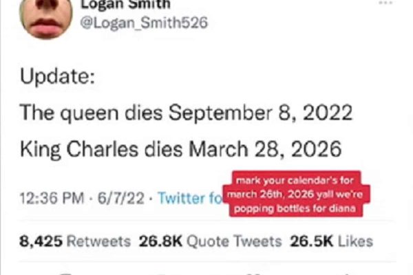 به گزارش رسانه هدهد کانادا، لوگان اسمیت که با نام توییتر @logan_smith526 شناخته میشود، ابتدا در ماه ژوئیه پست کرد که طولانیترین پادشاه بریتانیا در ۸ سپتامبر ۲۰۲۲ خواهد مرد. و اینگونه تاریخ فوت ملکه را پیشبینی کرده است.